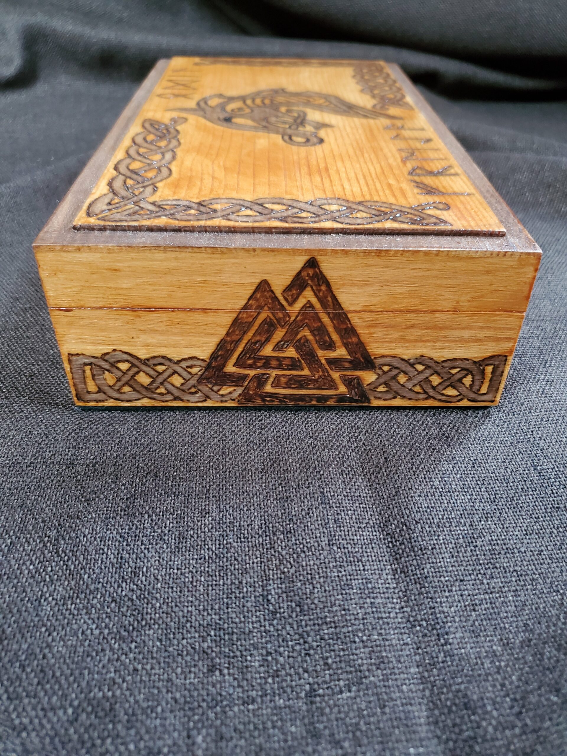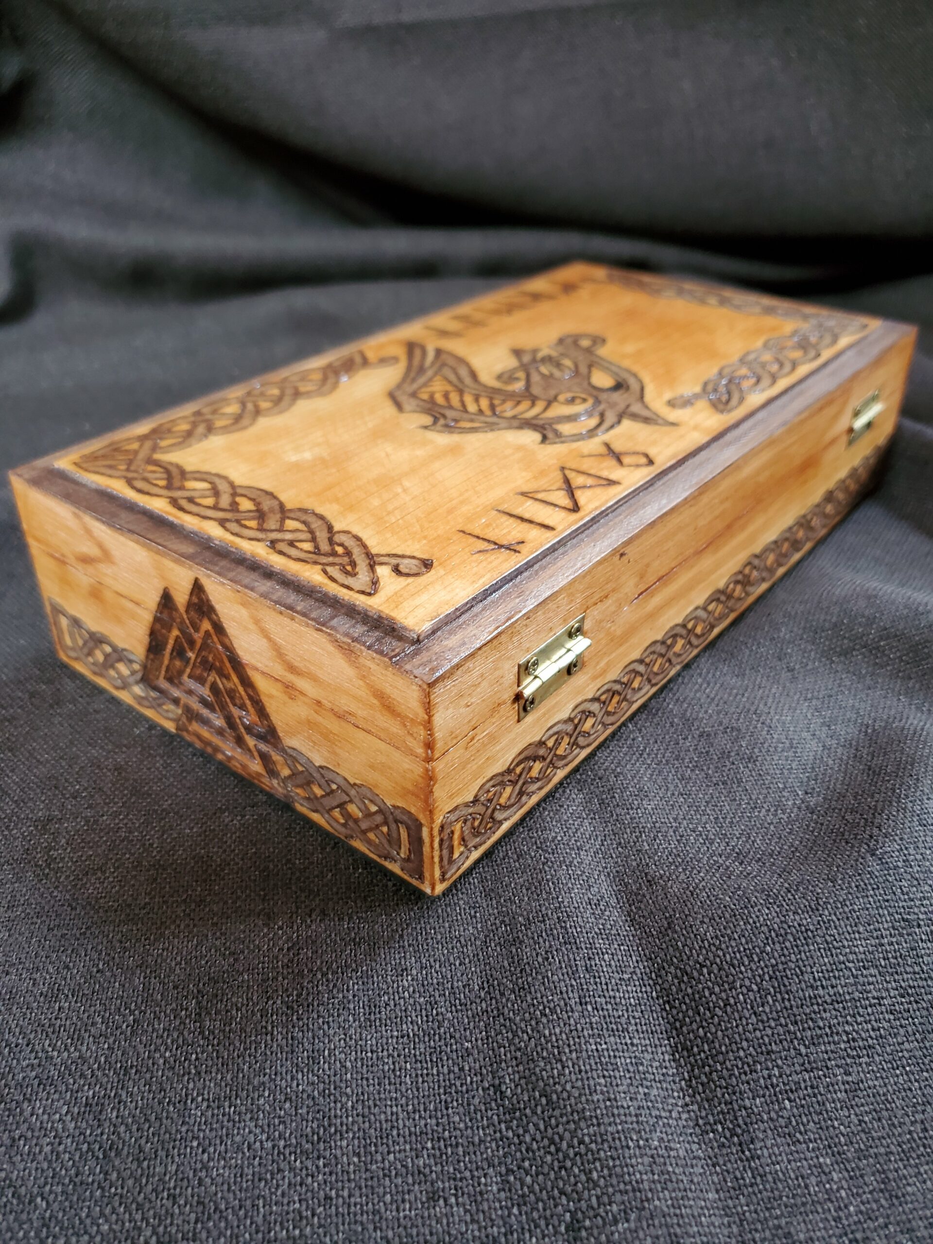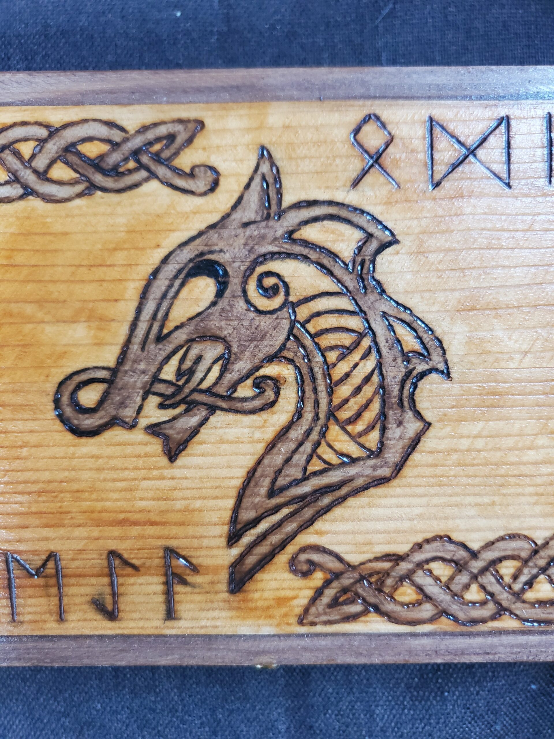 Le symbole gravé est une tête de Drakkar, des runes et des Valknut.