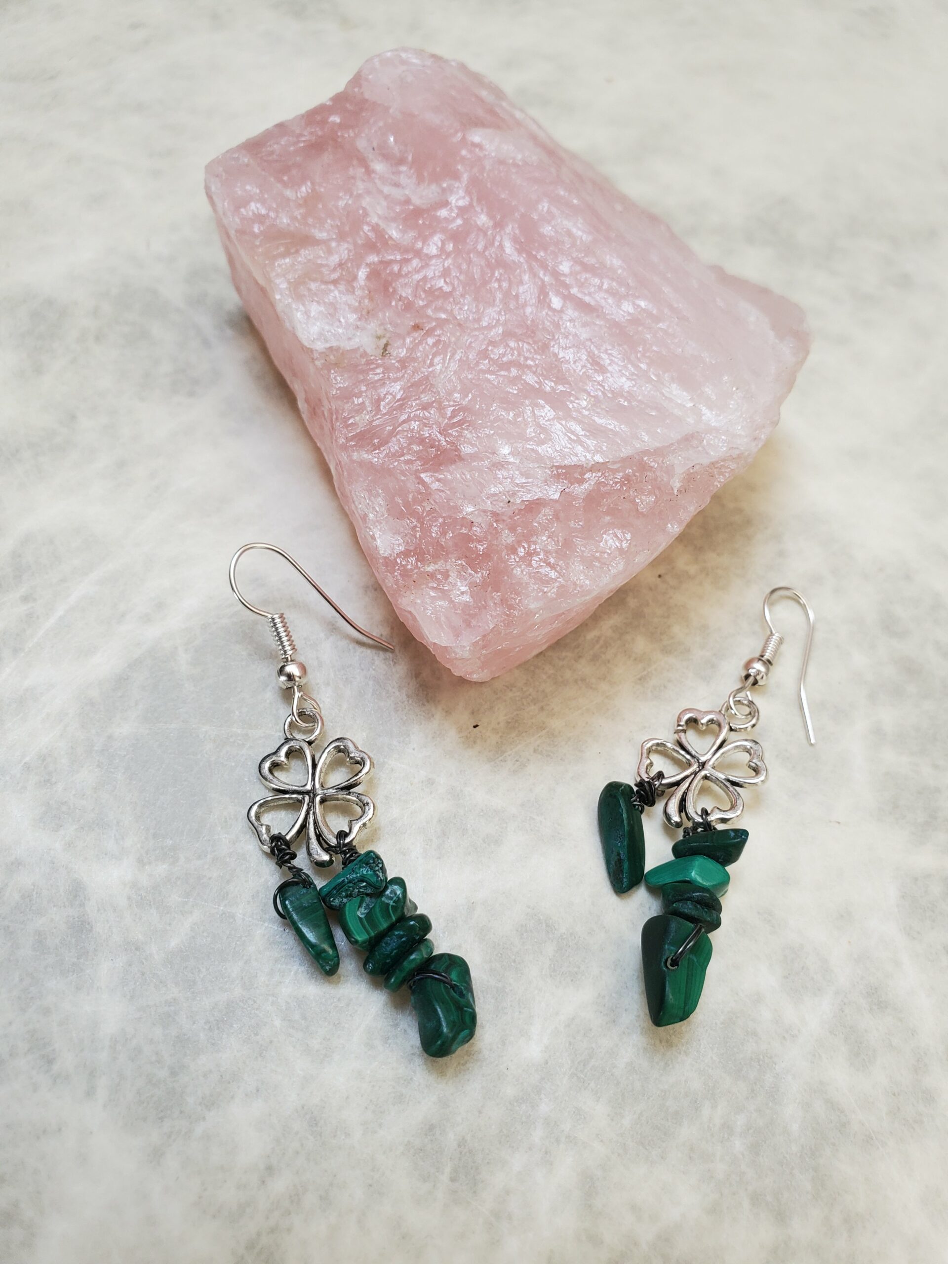 Elles sont faites en Malachite et ornées d’un trèfle.