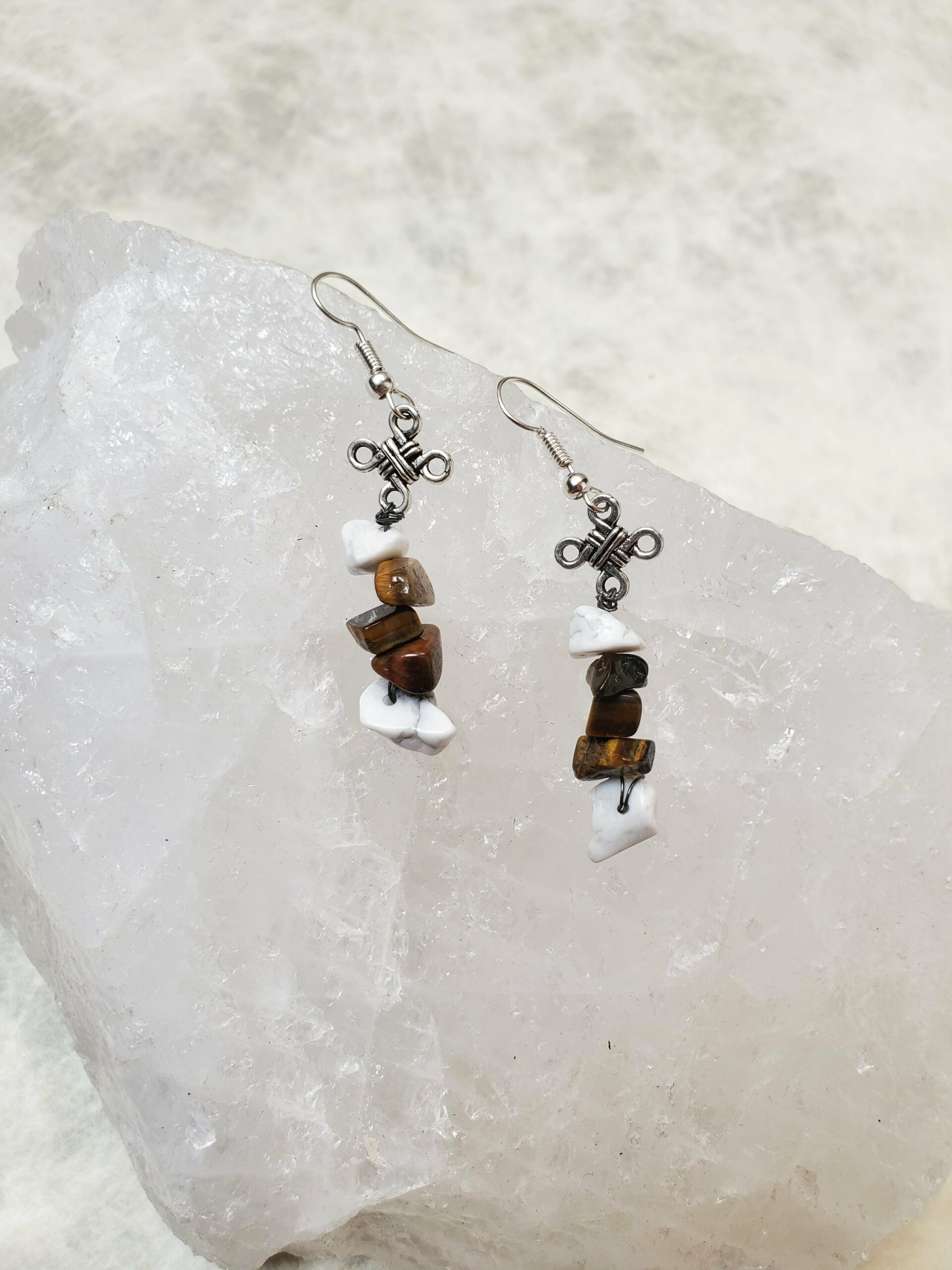 Elles sont faites en Œil de tigre, Howlite et ornées d’un noeudceltique.