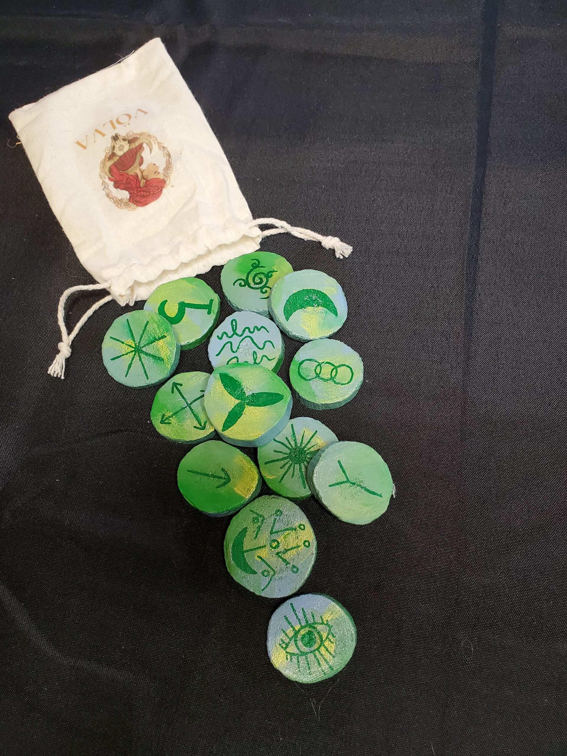 Ce jeu est vendu dans un pochon en coton et avec son livret explicatif fait entièrement par mes soins également. Vous y trouverez la méthode de tirage et la signification de chaques runes.