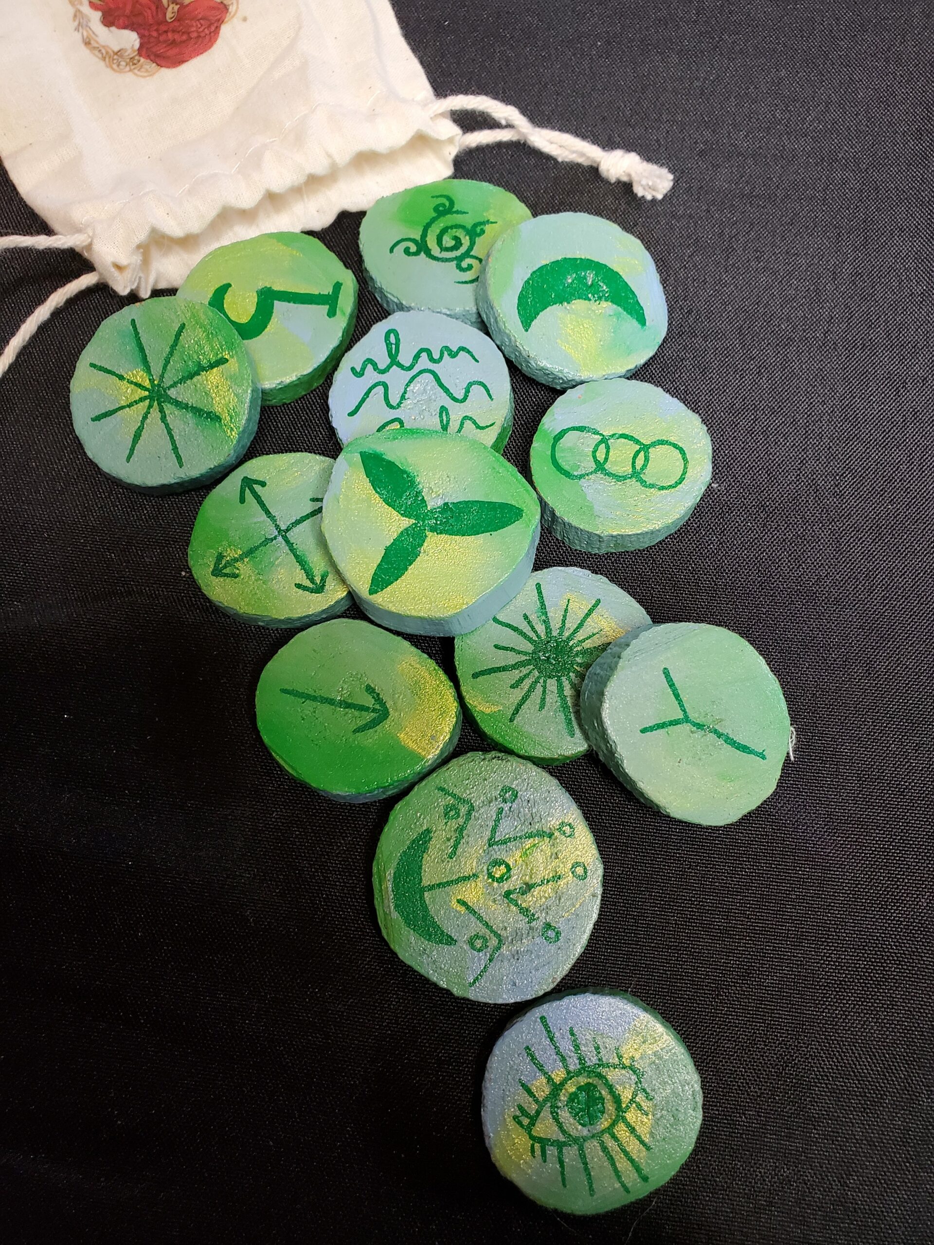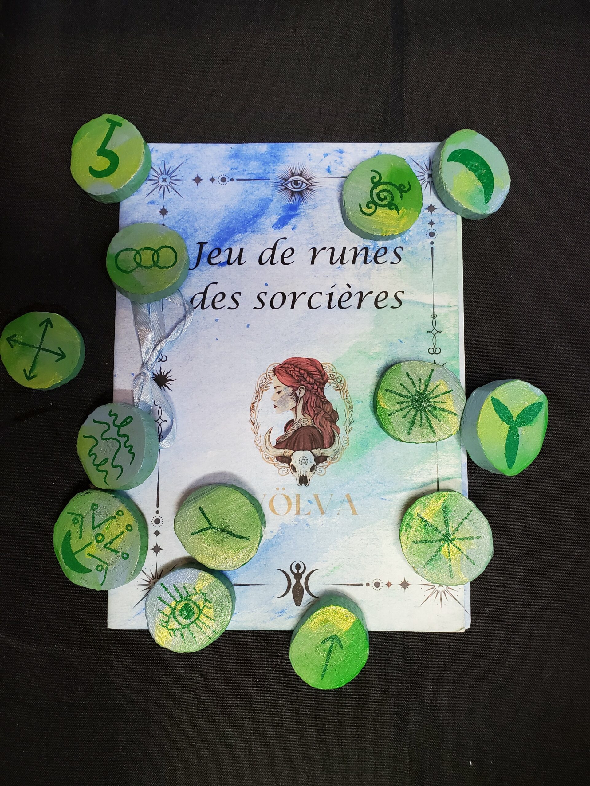Ce jeu de runes en bois a été fait par mes soins avec des branches ramassées en pleine nature.