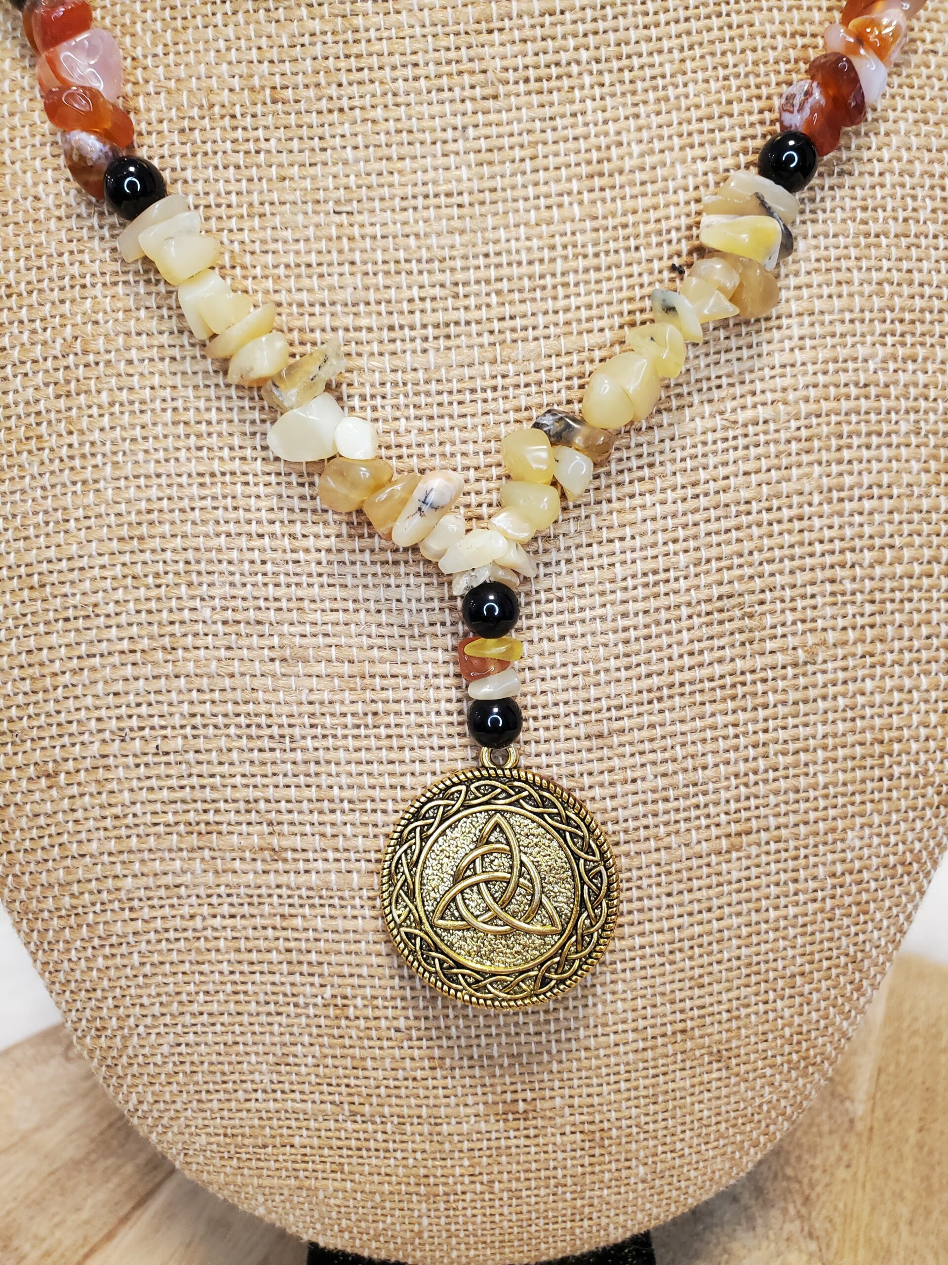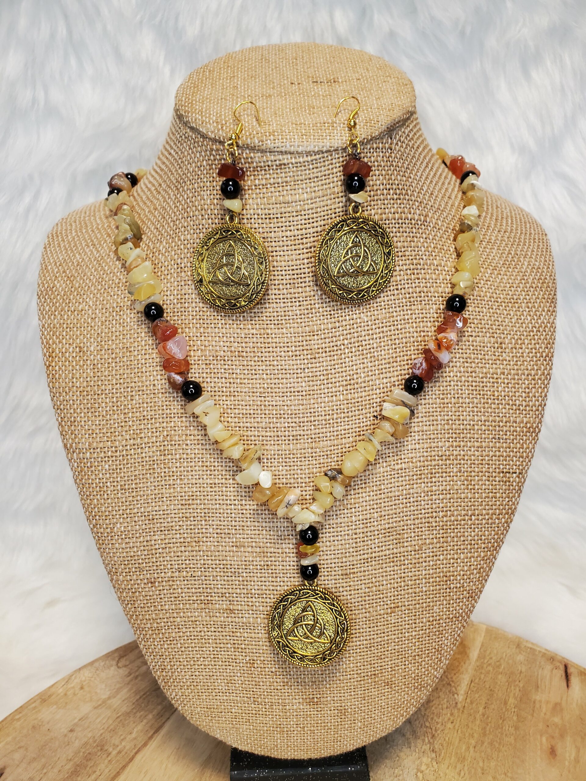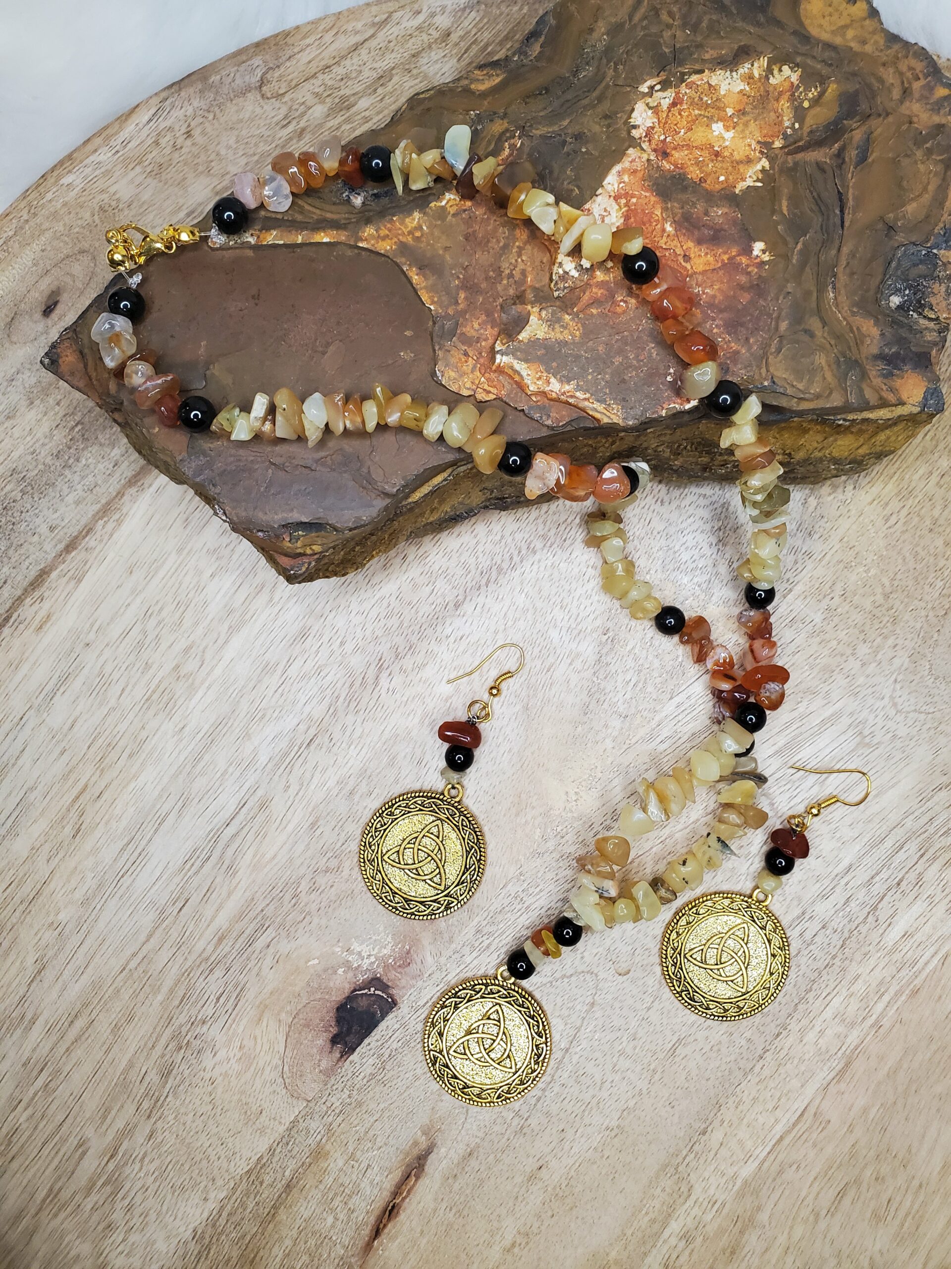 Parure en Opale jaune, Tourmaline noire et Cornaline