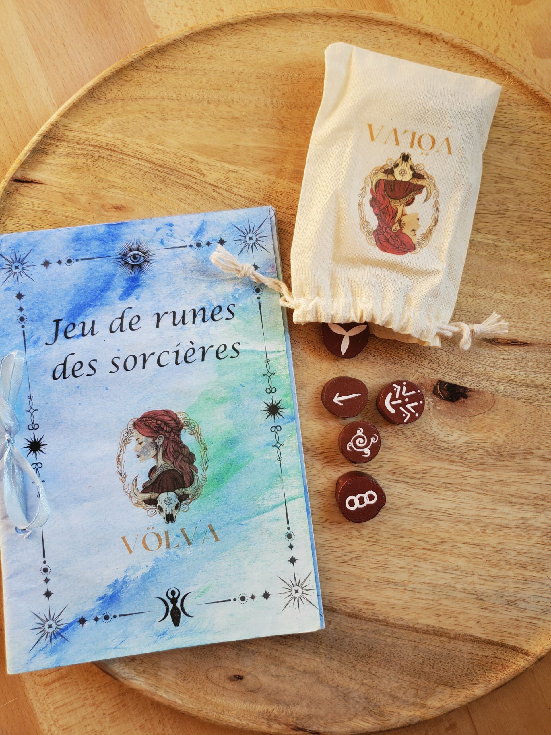 Ce jeu est vendu dans un pochon en coton et avec son livret explicatif fait entièrement par mes soins également. Vous y trouverez la méthode de tirage et la signification de chaques runes.