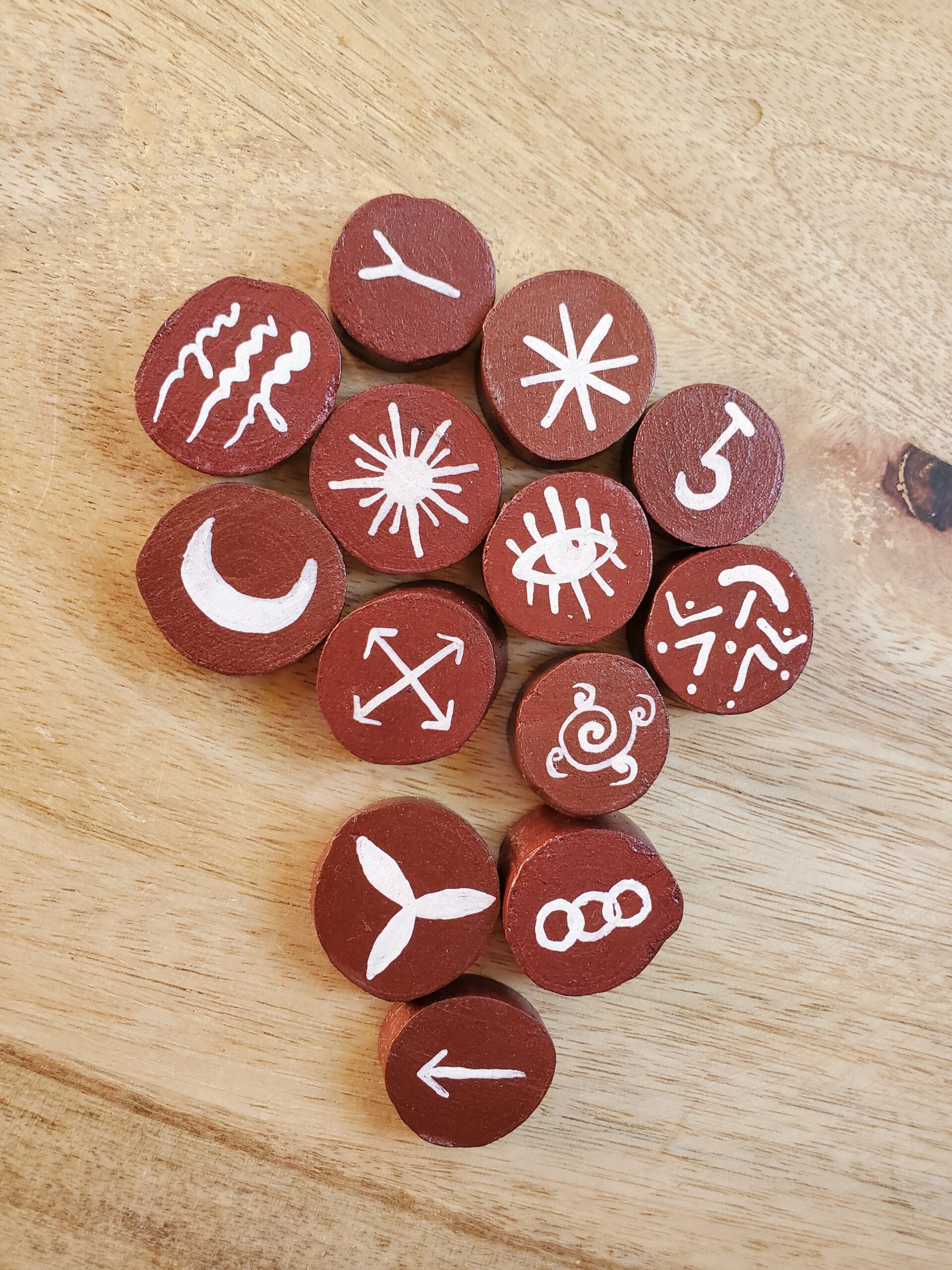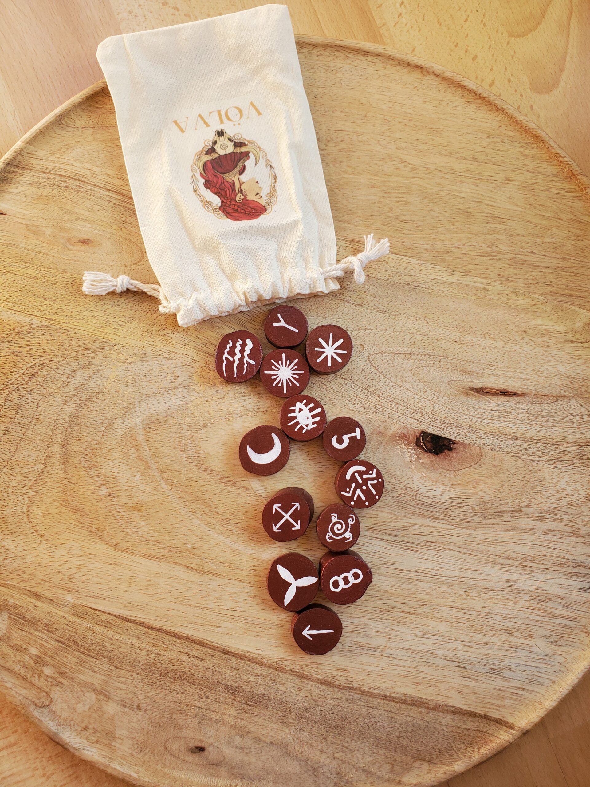 Ce jeu de runes en bois a été fait par mes soins avec des branches ramassées en pleine nature.
