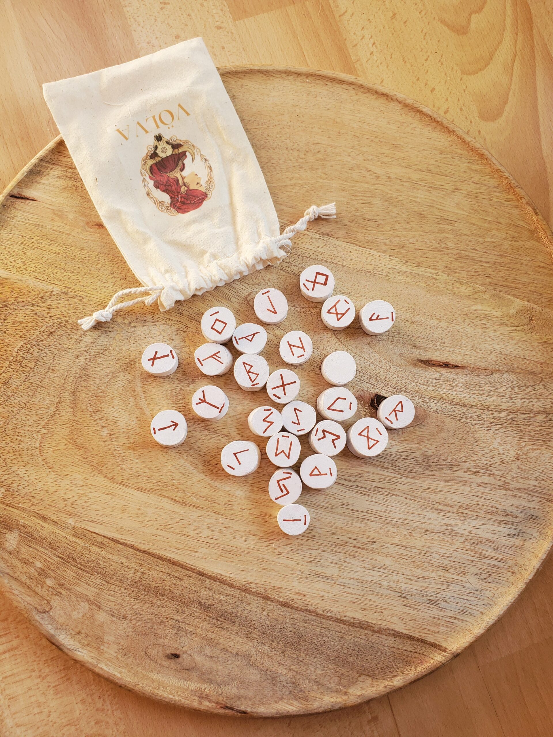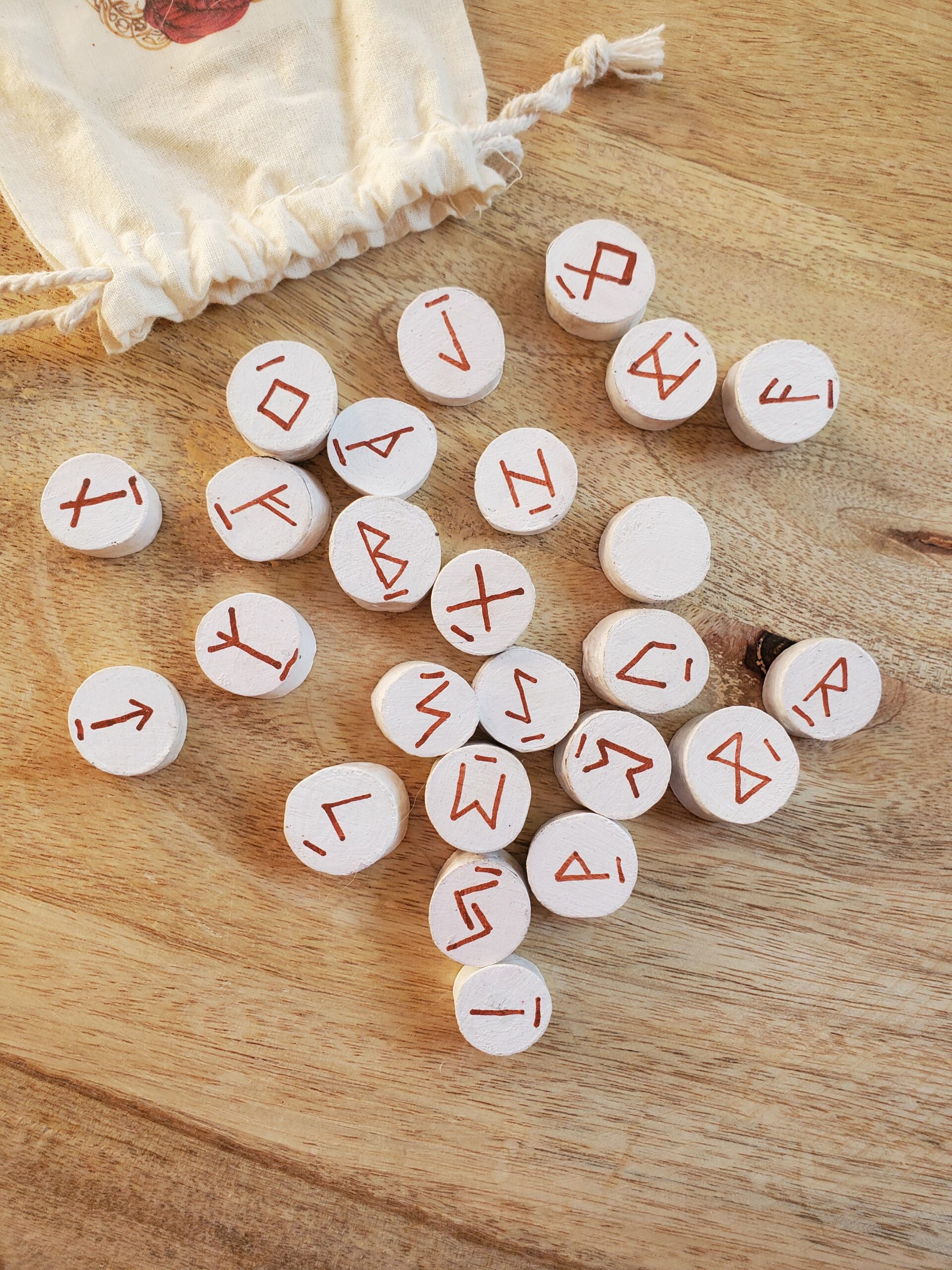 Ce jeu de runes en bois a été fait par mes soins avec des branches ramassées en pleine nature.